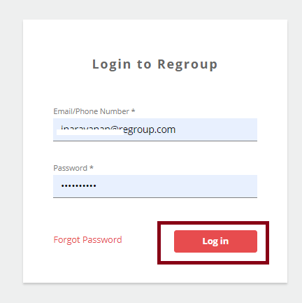 When you add an admin to your organization, they receive an email with their sign-in details. Use the details found in the email to log into the Regroup application as follows: