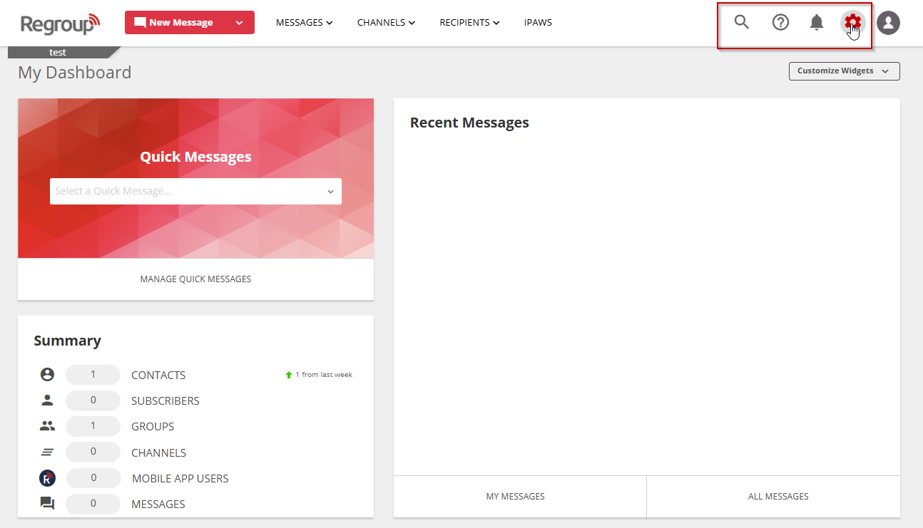 - Navigate to Organization Settings via the icon in the top right corner.