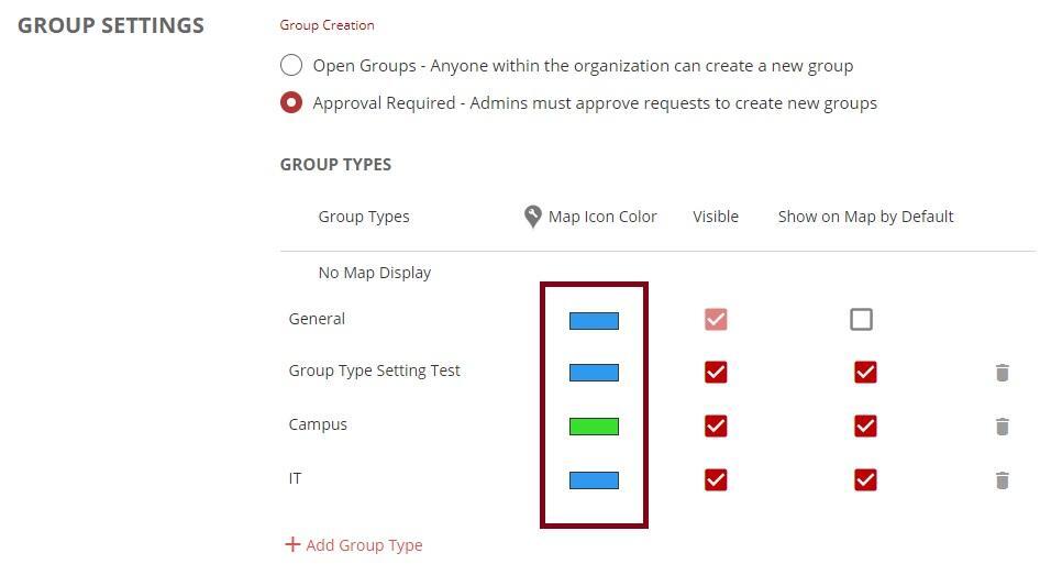- Select a Map Icon Color for the group type’s map pins.