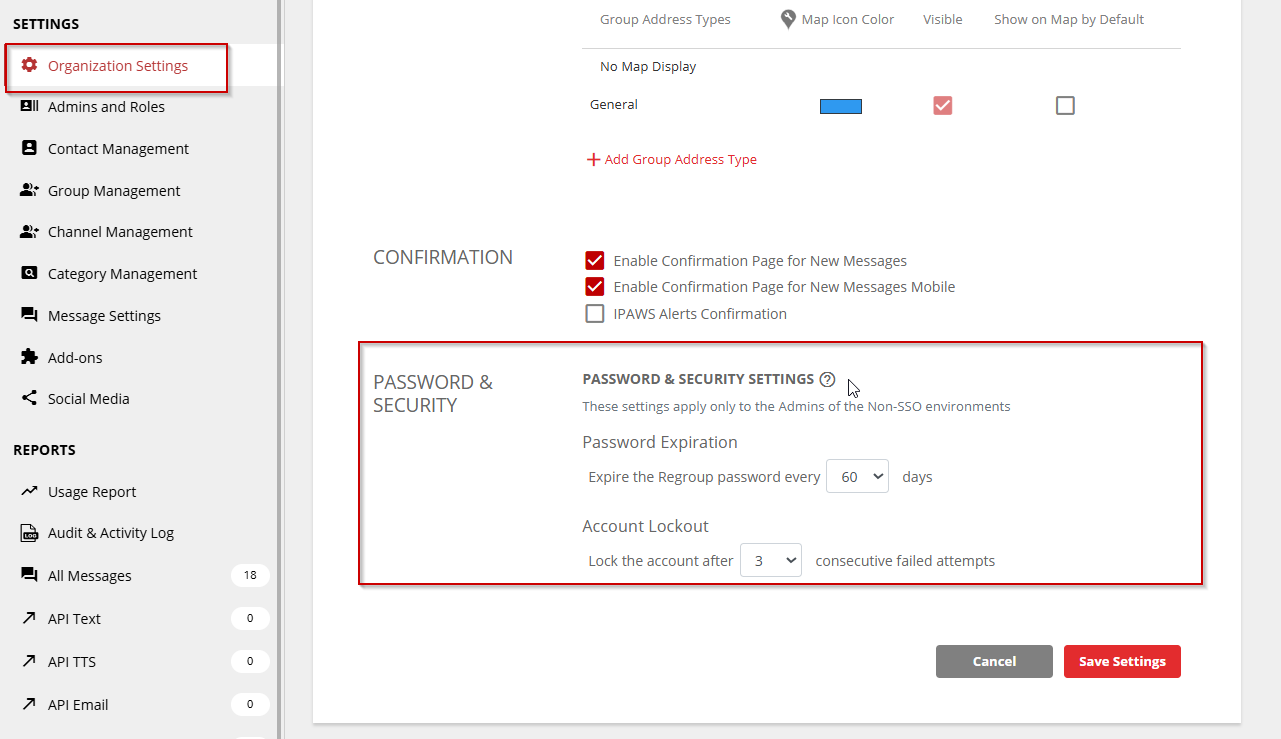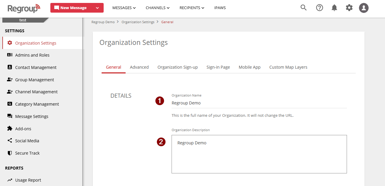 Organization General Settings