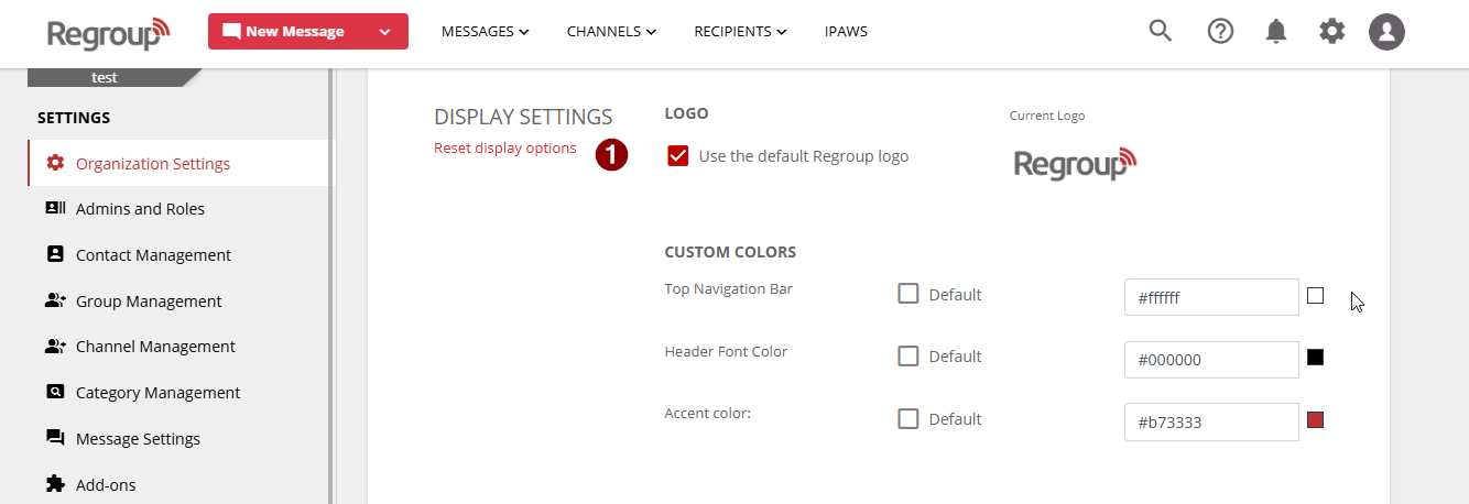 Tip: Check Use the default Regroup logo to revert to the default logo.
