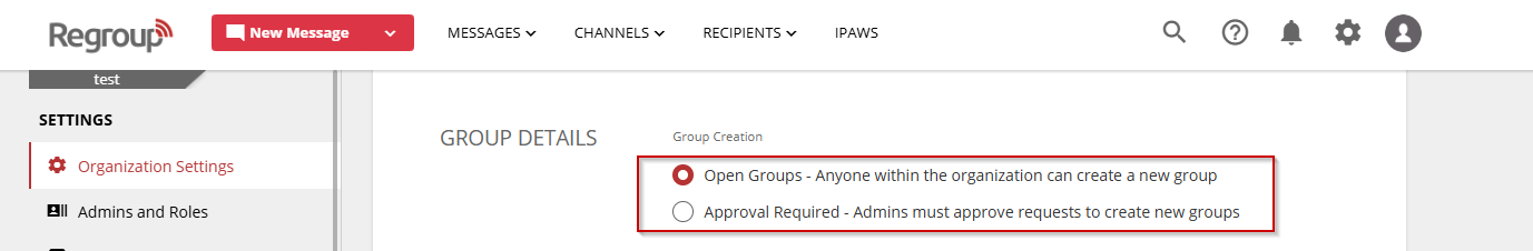 - Open Groups: Admins with permissions can create groups without approval.